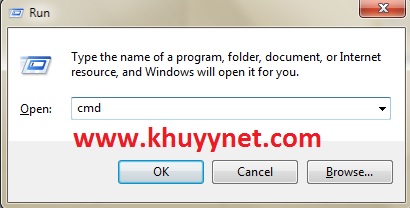 Buka "Cmd" dengan cara menekan tombol keyboard "Start + R", lalu ketik "Cmd" dan "Ok".
